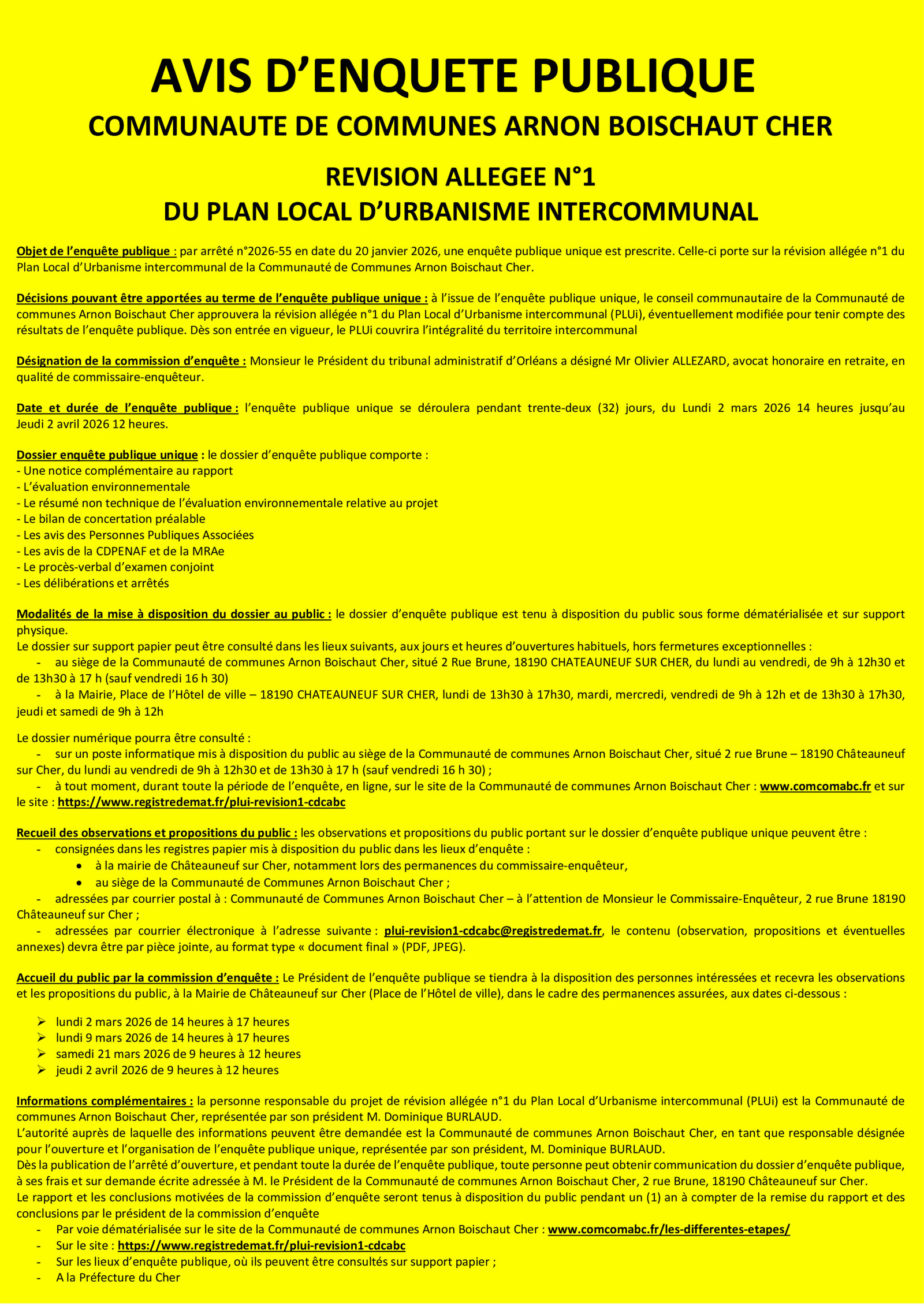 Communauté de Communes Arnon Boischaut Cher 2 rue Brune – 18190 CHATEAUNEUF SUR CHER Tel : 02 48 60 42 38 |